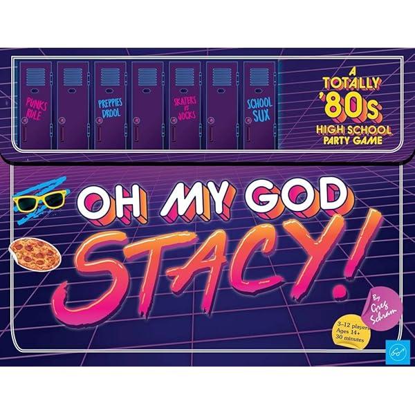 Amazon Com Chronicle Books Oh My God Stacy A Totally 80s High School Party Game For 3 12 Players Ages 14 Find Your Clique And Race To Be The Coolest In School Rad